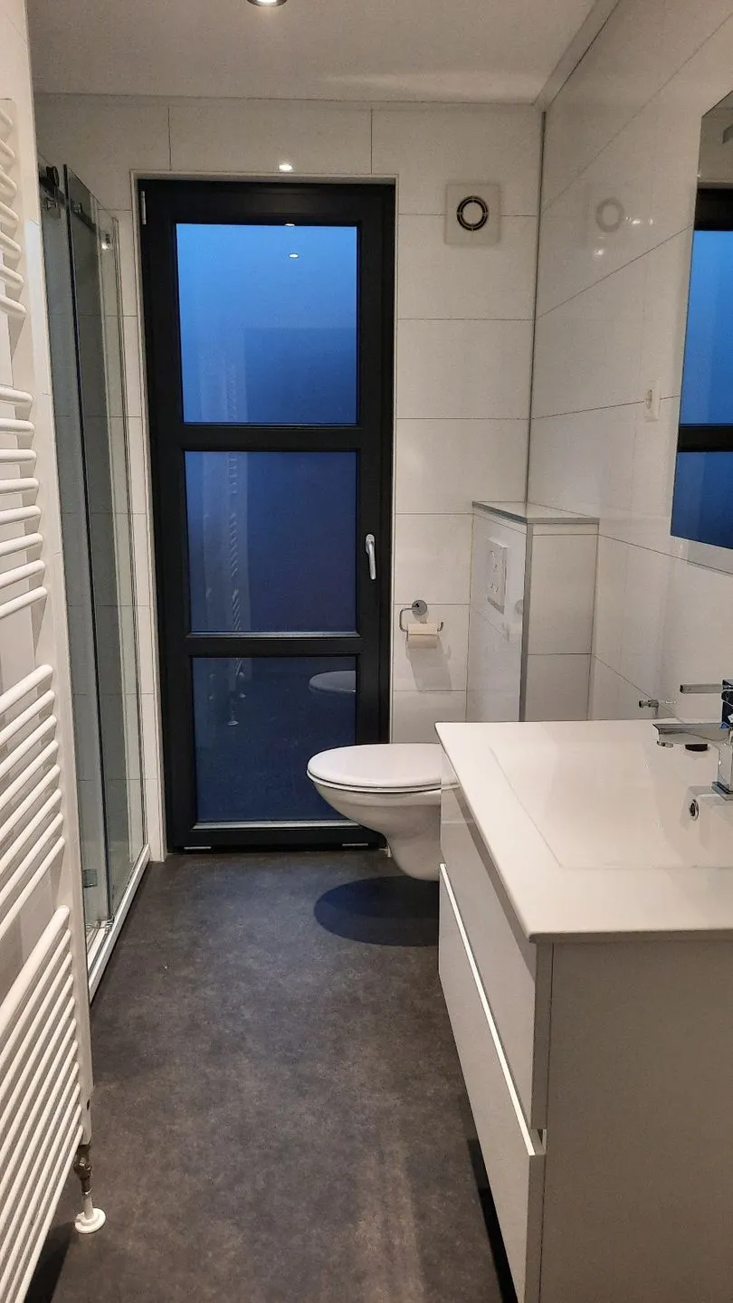 * Modernes Badezimmer mit Dusche, Waschbecken & WC