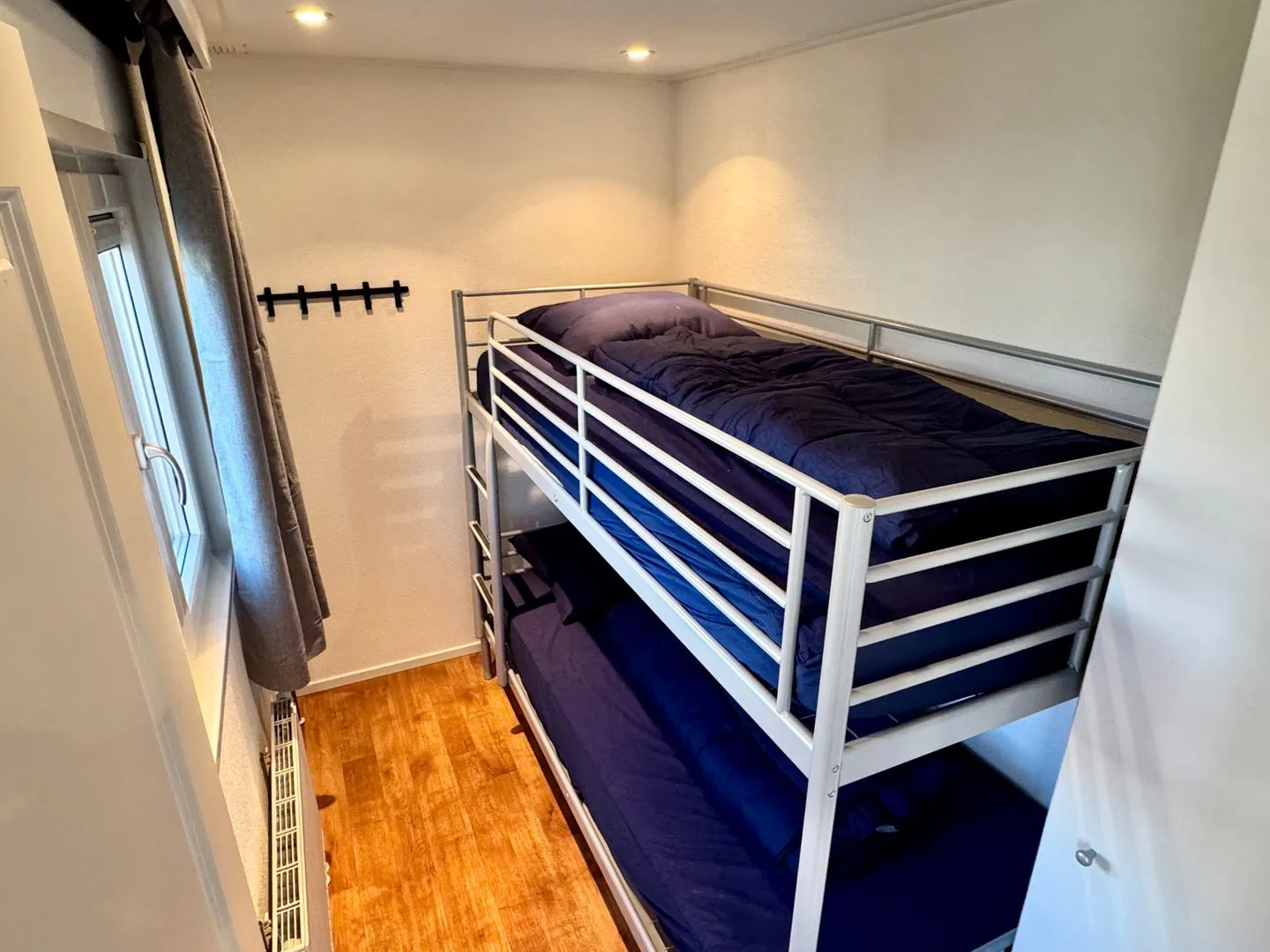 Das Chalet verfügt über drei separate Schlafzimmer und fünf Schlafmöglichkeiten - eines davon mit einem Stockbett für Kinder. Im hellen Badezimmer befinden sich Dusche, WC, Waschbecken, Fenster und Spiegel, ergänzt durch ein Gäste-WC für zusätzlichen Komfort. Für längere Aufenthalte stehen gemeinschaftlich nutzbare Waschmaschine und Trockner zur Verfügung. Garderobe, Staubsauger, Wäscheständer und Abfalleimer sind vorhanden und unterstützen einen angenehmen, sorglosen Aufenthalt.
