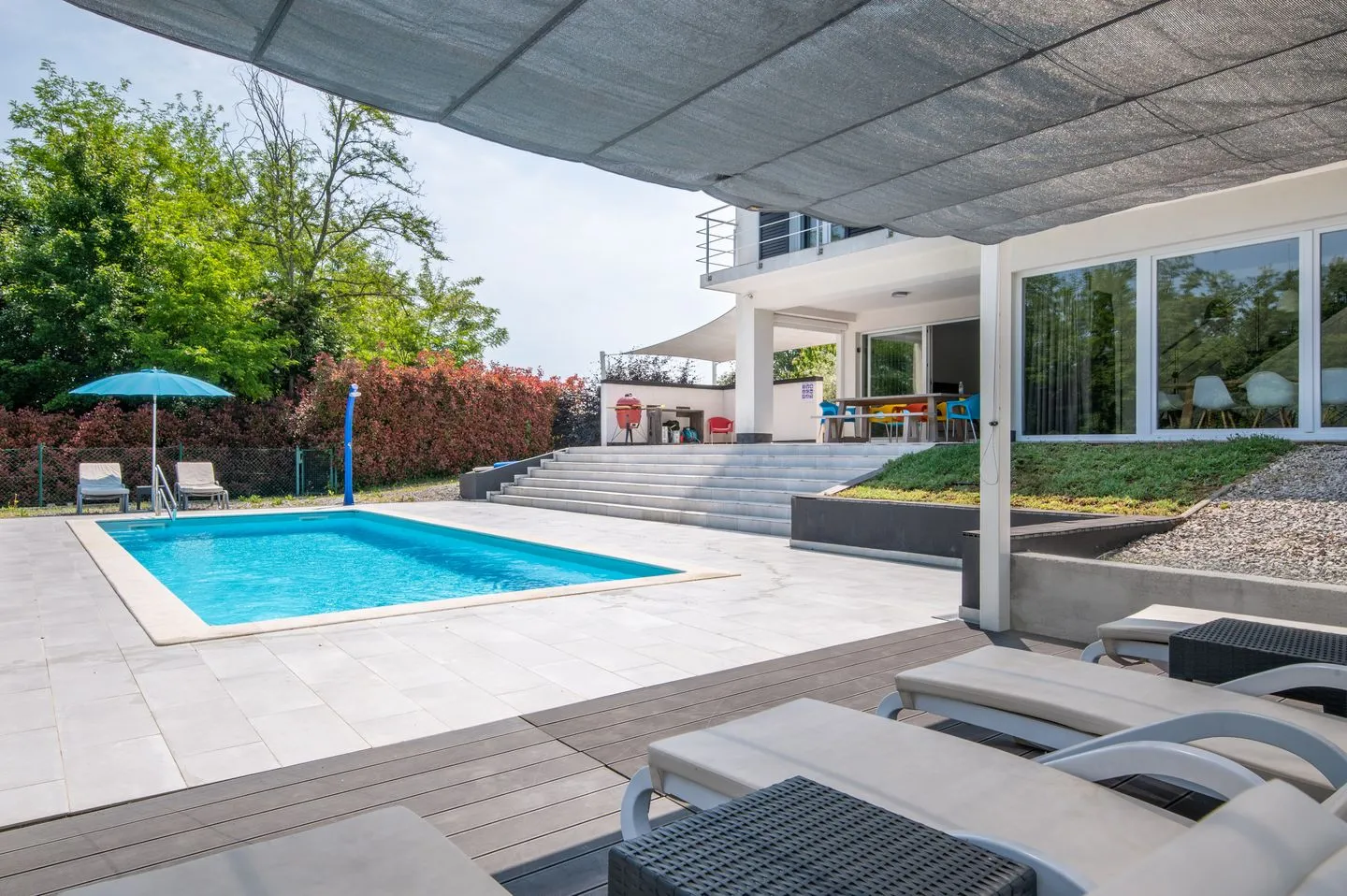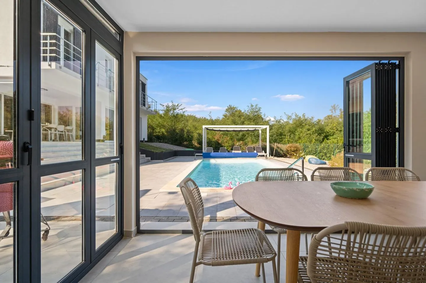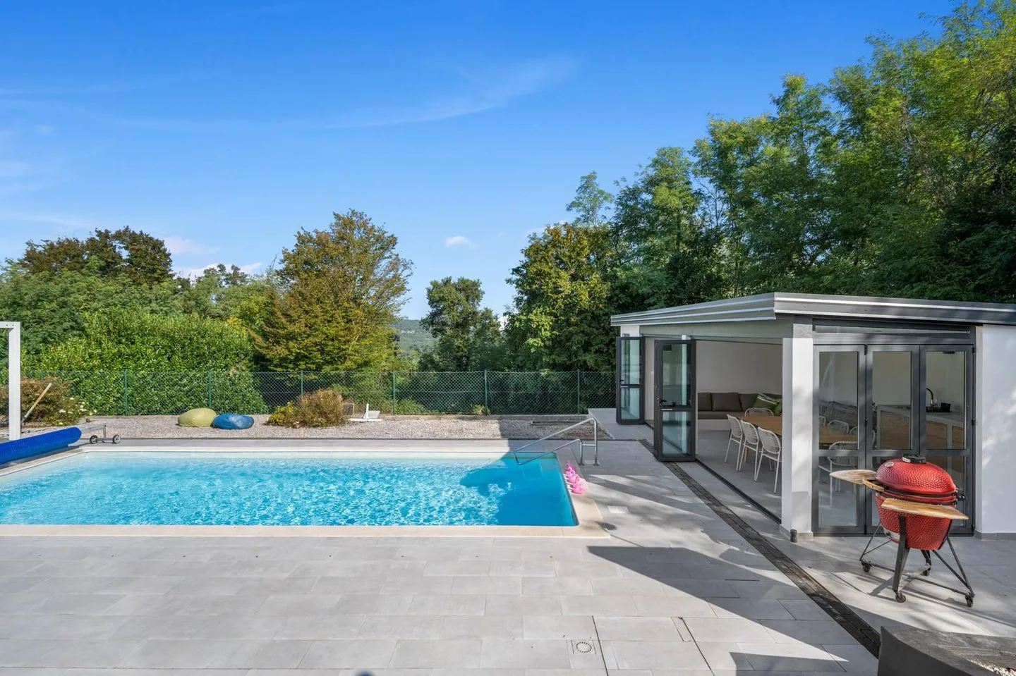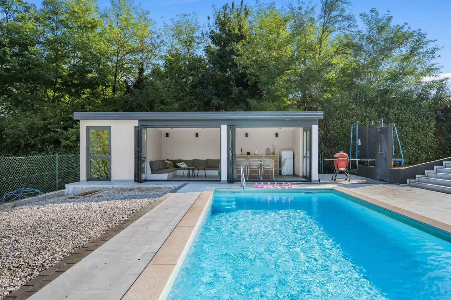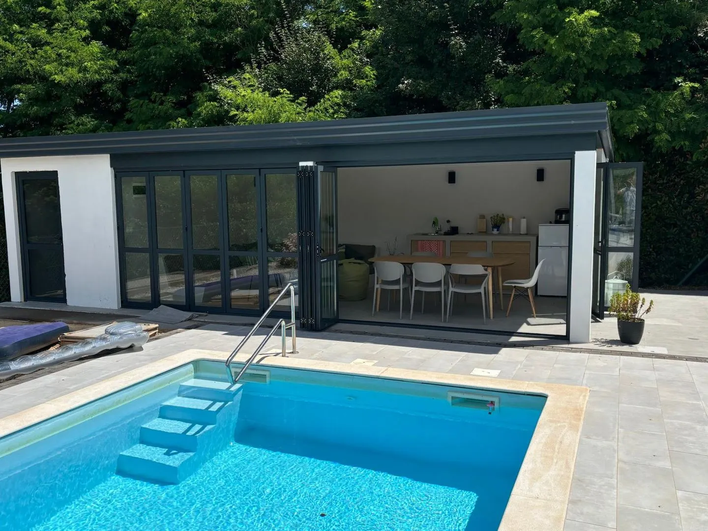 Outdoors, the private 62 m² pool is reserved exclusively for your use and is complemented by a garden with sun loungers, parasol, sun protection, hammock, outdoor shower, and a dedicated barbecue area with a charcoal grill. A covered and enclosed terrace/balcony, awning, garden pavilion, garden shed, and outdoor kitchen create multiple spaces to dine and relax at any time of day, with particularly impressive landscape views and a good valley view as well as pool views. Children are welcome, including babies, with a baby cot and one high chair available, plus toys and a trampoline for outdoor fun.