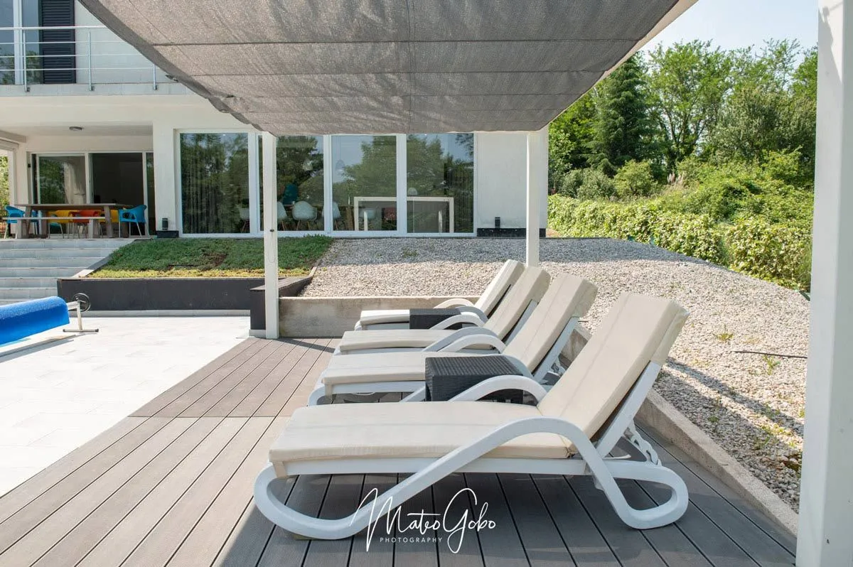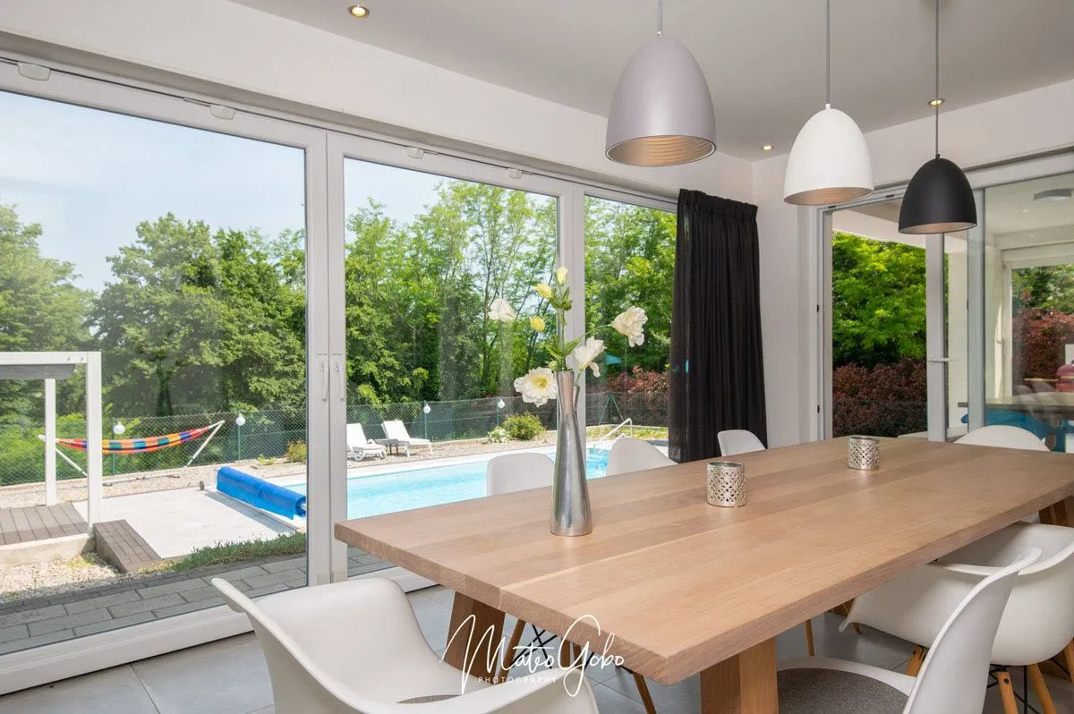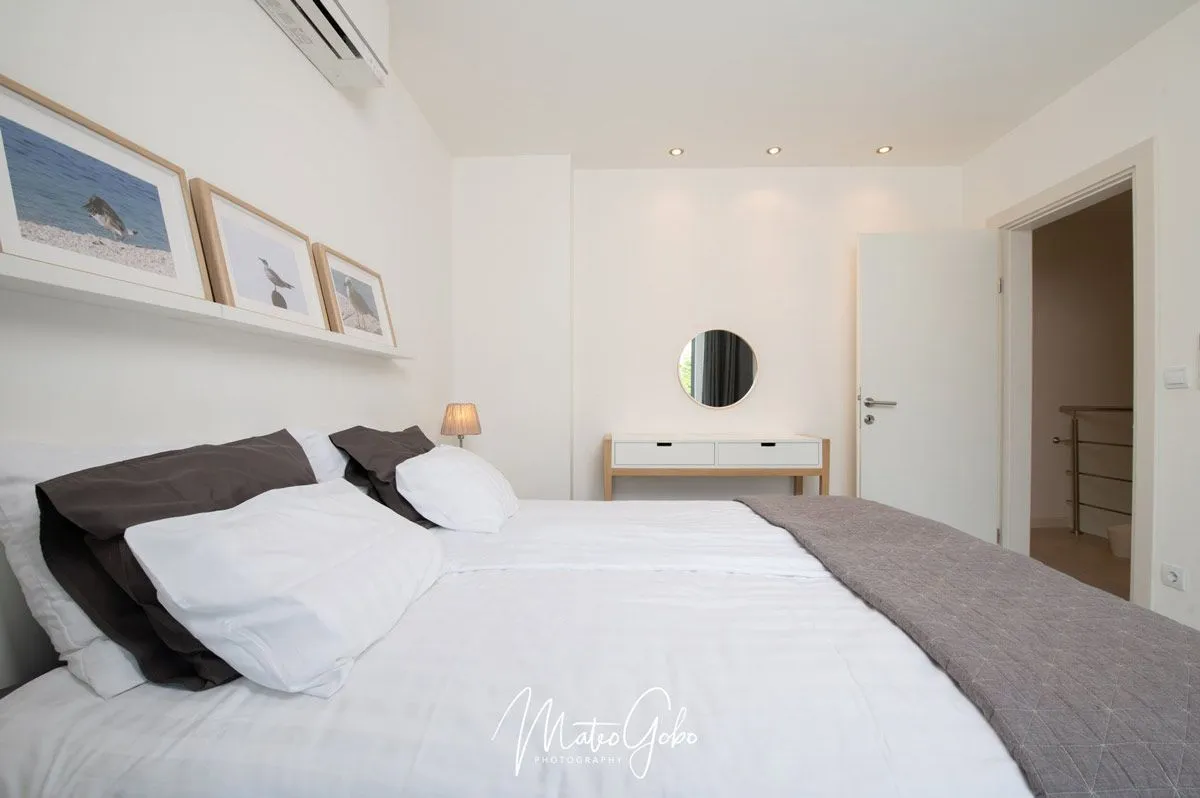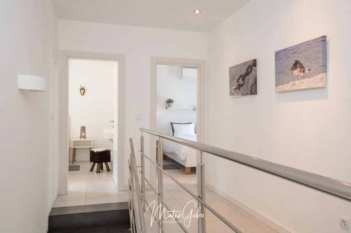 Ferienvilla Mala-Diva is a detached, non-smoking holiday villa built in 2014, offering 200 m² of living space across two floors on a 700 m² fenced plot—ideal for families, couples, and guests who value privacy and comfort. With 4 bedrooms and accommodation for up to 8 guests, the house provides a well-structured layout with a living room, dining room, open kitchen connected to the living area, a conservatory, and a total of 6 rooms. Two bathrooms with two walk-in (level-access) showers are complemented by three additional guest WCs, ensuring smooth mornings even for larger groups. All rooms are air-conditioned and heated via the air-conditioning system, and tiled floors throughout the living and sleeping areas add to the easy-care, allergy-friendly concept. Window privacy screens are available for all windows.
