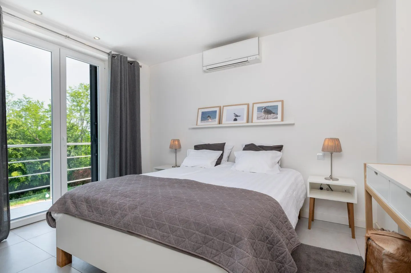 At the heart of the home, you will find a comfortable lounge area with sofa seating, armchairs, a dining area with dining table, and entertainment options including a 44–55" satellite TV with international digital channels, Wi-Fi internet (from 25 Mbit/s), games, and a PlayStation 3. The kitchen is designed for self-catering with an induction hob, electric oven, microwave, dishwasher, fridge with freezer compartment, toaster, kettle, mixer, food processor, kitchen machine, egg cooker, sandwich toaster, cookware, and full crockery and cutlery. For coffee lovers, a Senseo espresso machine and a coffee machine are provided, along with spices and dish towels.