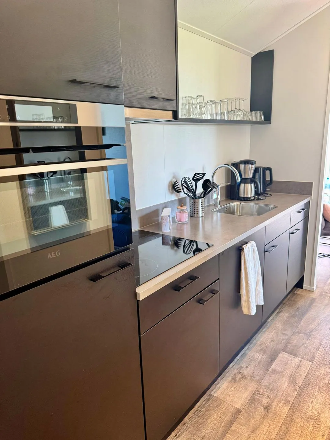 Die Unterkunft verfügt über insgesamt 3 Zimmer, darunter 2 Schlafzimmer, 1 Badezimmer und einen Wohnbereich mit Sofaecke, Sessel, Sofa, Esstisch und offen zum Wohnzimmer gestalteter Küche. Die Küche ist umfassend ausgestattet und bietet unter anderem Induktionsherd, Backofen, Mikrowelle, Spülmaschine, Kühlschrank mit Gefrierfach, Wasserkocher, Kaffeemaschine sowie Geschirr, Besteck und Küchenutensilien. Das Badezimmer ist mit einer bodengleichen Dusche, WC, Waschbecken, Spiegel und Fenster ausgestattet.